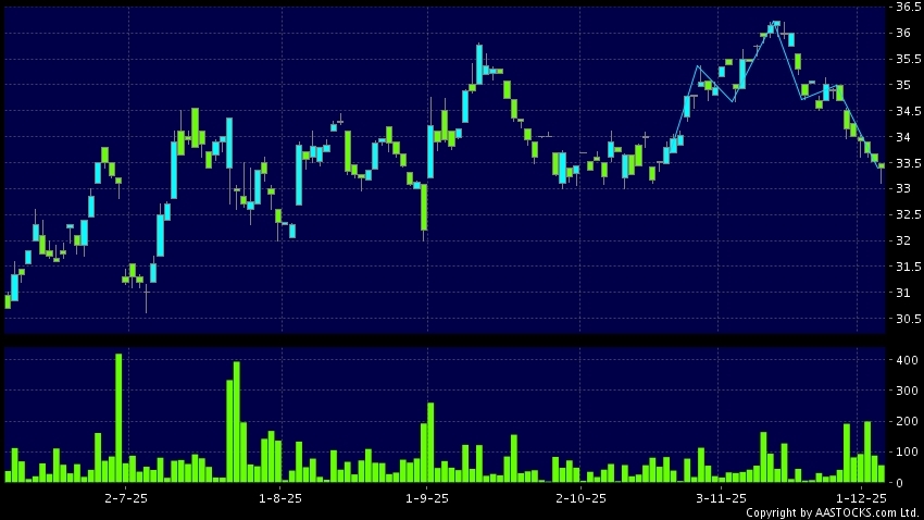 BOC HONG KONG-R(82388.HK) shows a triple top reversal. Last printed at 33.440; fell 0.239%; on volume of 56.50K shares and turnover of $1.88MRecent PerformanceIn 3 days: -1.415%In ...