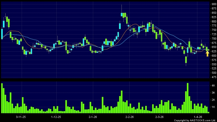 黄金交叉是一个利好讯号,指股价的短期移动平均线升穿长期移动平均线,例如50天线升穿250天线,在图表上构成交叉的形状。股价通常会上升形成一个上升趋势,技术走势向好。(港股报价延迟最少十五分钟。沽空资料截至 2026-04-14 12:25。)