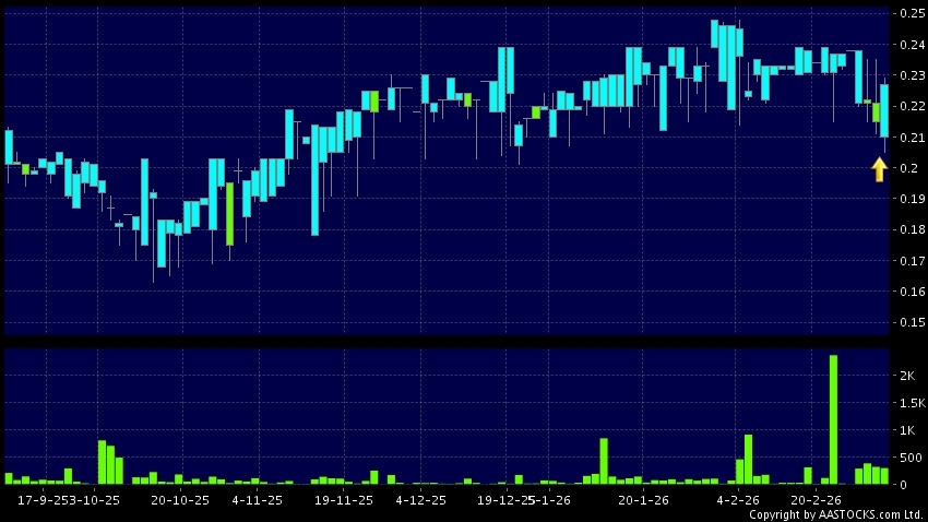 免責聲明:以上金融市場數據、報價、圖表 及/或各種技術分析指標乃根據公開資料分析和演釋自動生成的,僅作參考使用。此類自動生成的內容並不代表AASTOCKS.com Limited的立場。AASTOCKS.com Limited並不保證其準確性、完整性、實時性或者正確性。閣下應諮詢獨立專業意見,以核實定價資料或獲取更詳細的市場信息及須為所有跟隨此類自動生成的內容執行的交易或使用該內容負責。