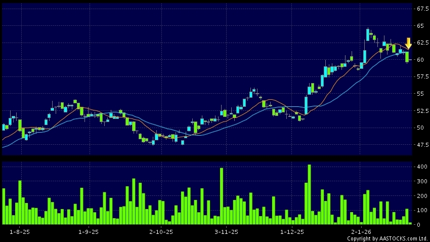 免責聲明:以上金融市場數據、報價、圖表 及/或各種技術分析指標乃根據公開資料分析和演釋自動生成的,僅作參考使用。此類自動生成的內容並不代表AASTOCKS.com Limited的立場。AASTOCKS.com Limited並不保證其準確性、完整性、實時性或者正確性。閣下應諮詢獨立專業意見,以核實定價資料或獲取更詳細的市場信息及須為所有跟隨此類自動生成的內容執行的交易或使用該內容負責。
