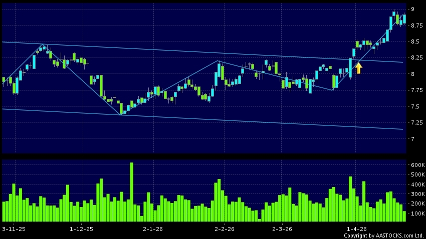 Disclaimer:The information, financial market data, quotes, charts, statistics and / or various technical analysis indicators are automatically generated based on the analyses and interpretations of publicly available information and should be used as references only at your own discretion. Such automatically generated content does not reflect the views or opinions of AASTOCKS.com Limited nor does AASTOCKS.com Limited make any guarantees to their accuracy, completeness, timeliness or correctness. You are advised to consult independent professional advice to verify pricing information or to obtain more detailed market information. Any uses of information or trades executed following the said automatically generated content are taken at your own risk for your own account.