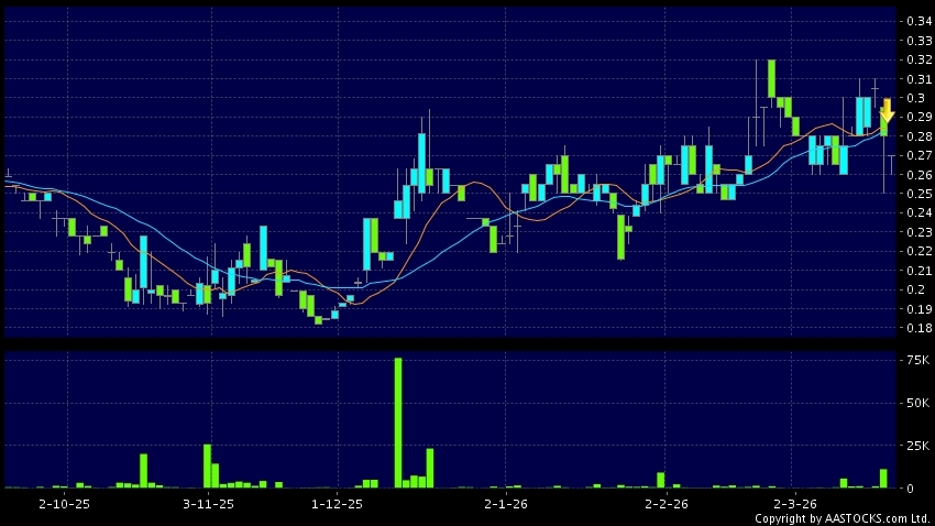 Disclaimer:The information, financial market data, quotes, charts, statistics and / or various technical analysis indicators are automatically generated based on the analyses and interpretations of publicly available information and should be used as references only at your own discretion. Such automatically generated content does not reflect the views or opinions of AASTOCKS.com Limited nor does AASTOCKS.com Limited make any guarantees to their accuracy, completeness, timeliness or correctness. You are advised to consult independent professional advice to verify pricing information or to obtain more detailed market information. Any uses of information or trades executed following the said automatically generated content are taken at your own risk for your own account.