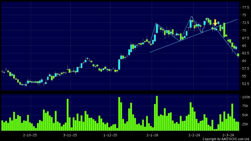 Head Shoulders top is a typical bearish signal, when stock price breaks the supportive level, downtrend would possibly start.(HK stocks quote is delayed for at least 15 mins.Short Selling Data as at 2026-03-09 16:25.)