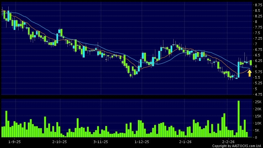 黃金交叉是一個利好訊號,指股價的短期移動平均線升穿長期移動平均線,例如50天線升穿250天線,在圖表上構成交叉的形狀。股價通常會上升形成一個上升趨勢,技術走勢向好。(港股報價延遲最少十五分鐘。沽空資料截至 2026-03-17 16:25。)