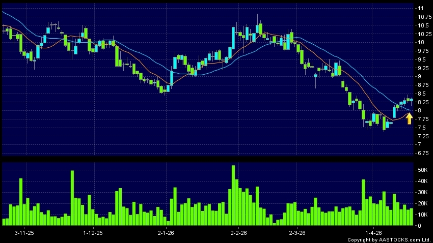 黃金交叉是一個利好訊號,指股價的短期移動平均線升穿長期移動平均線,例如50天線升穿250天線,在圖表上構成交叉的形狀。股價通常會上升形成一個上升趨勢,技術走勢向好。(港股報價延遲最少十五分鐘。沽空資料截至 2026-04-22 16:25。)
