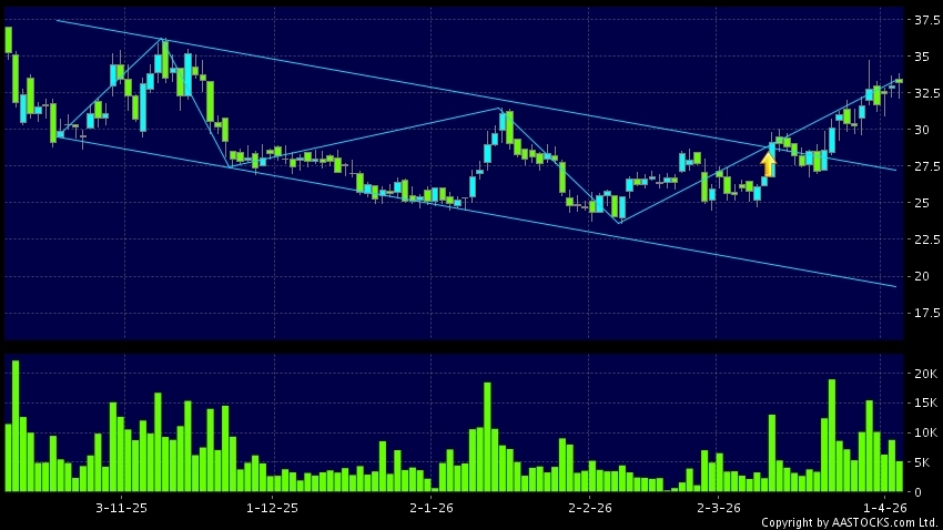 區域突破指股價在過去的一段時間只在一個範圍在內活動,然後股價上升作出突破,升穿區域的頂部,技術走勢向好。(港股報價延遲最少十五分鐘。沽空資料截至 2026-04-16 16:25。)