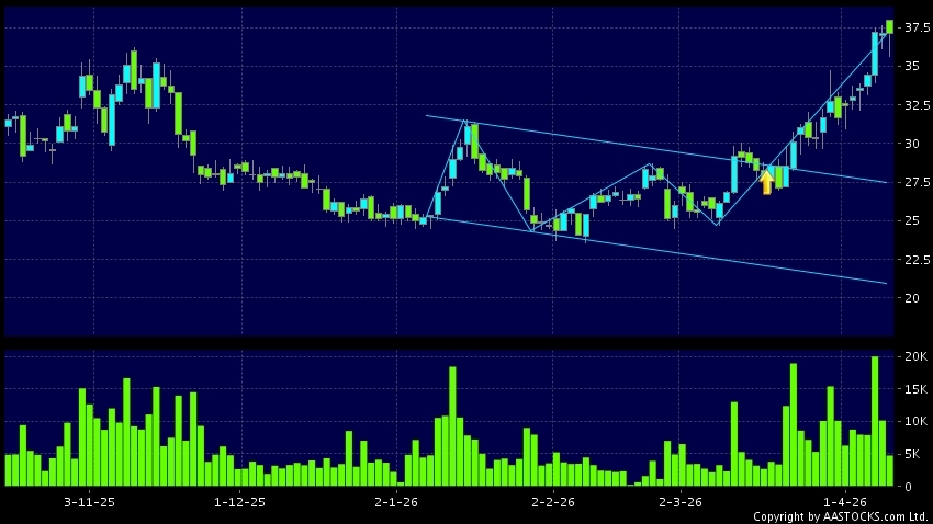 區域突破指股價在過去的一段時間只在一個範圍在內活動,然後股價上升作出突破,升穿區域的頂部,技術走勢向好。(港股報價延遲最少十五分鐘。沽空資料截至 2026-04-16 16:25。)